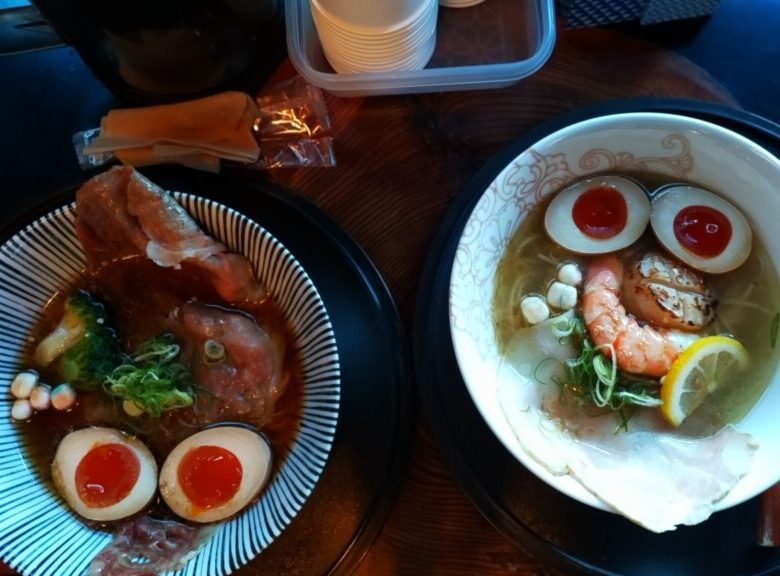 お正月限定メニューで帆立と海老の塩とりそばと熊野牛の醤油とりそばを注文。