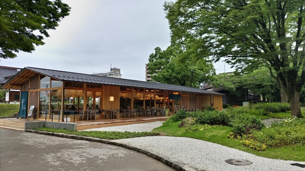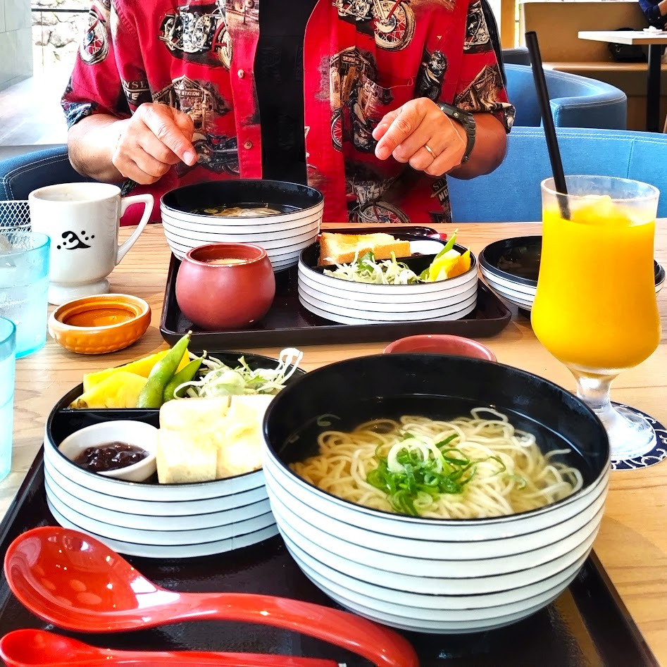 公園の中には食事ができるお店もありますが、ちょうど美味しそうなモーニングセットをやっている「四季彩うどん 華きんとん」さんが目に入ってきました。和モダンな雰囲気に惹かれ入店。「提灯モーニングセット」を頂きました。